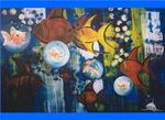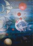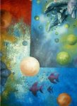 vissen en dolfijnen geschilderd in olie en acryl